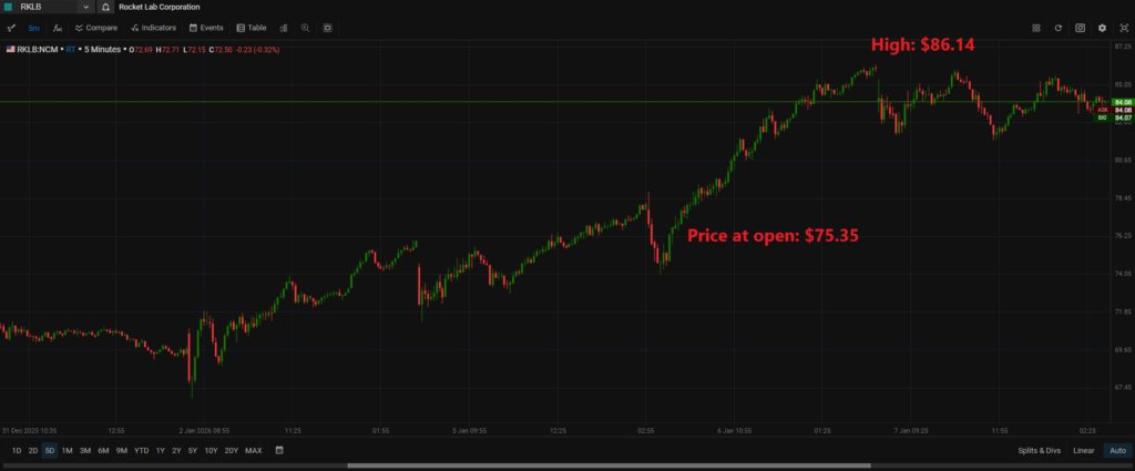 Tuesday was a nearly 10% green day for RKLB, with solid volume, and the stock almost reached its 52-week high of $86.25 per share.