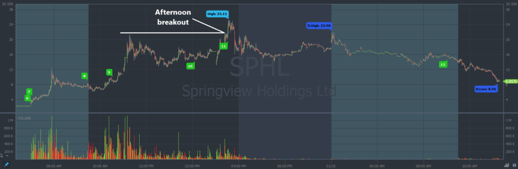 Thursday afternoon, I spotted a clean breakout on Springview Holdings Ltd (NASDAQ: SPHL) around $20.