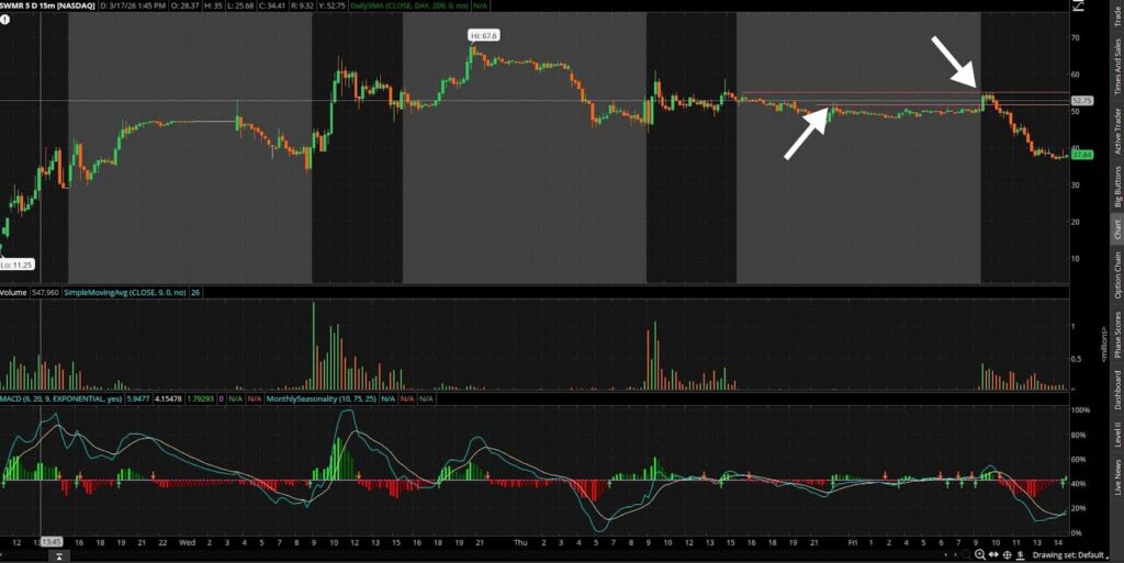 Source: thinkorswim SWMR 5-day, 15-min candle